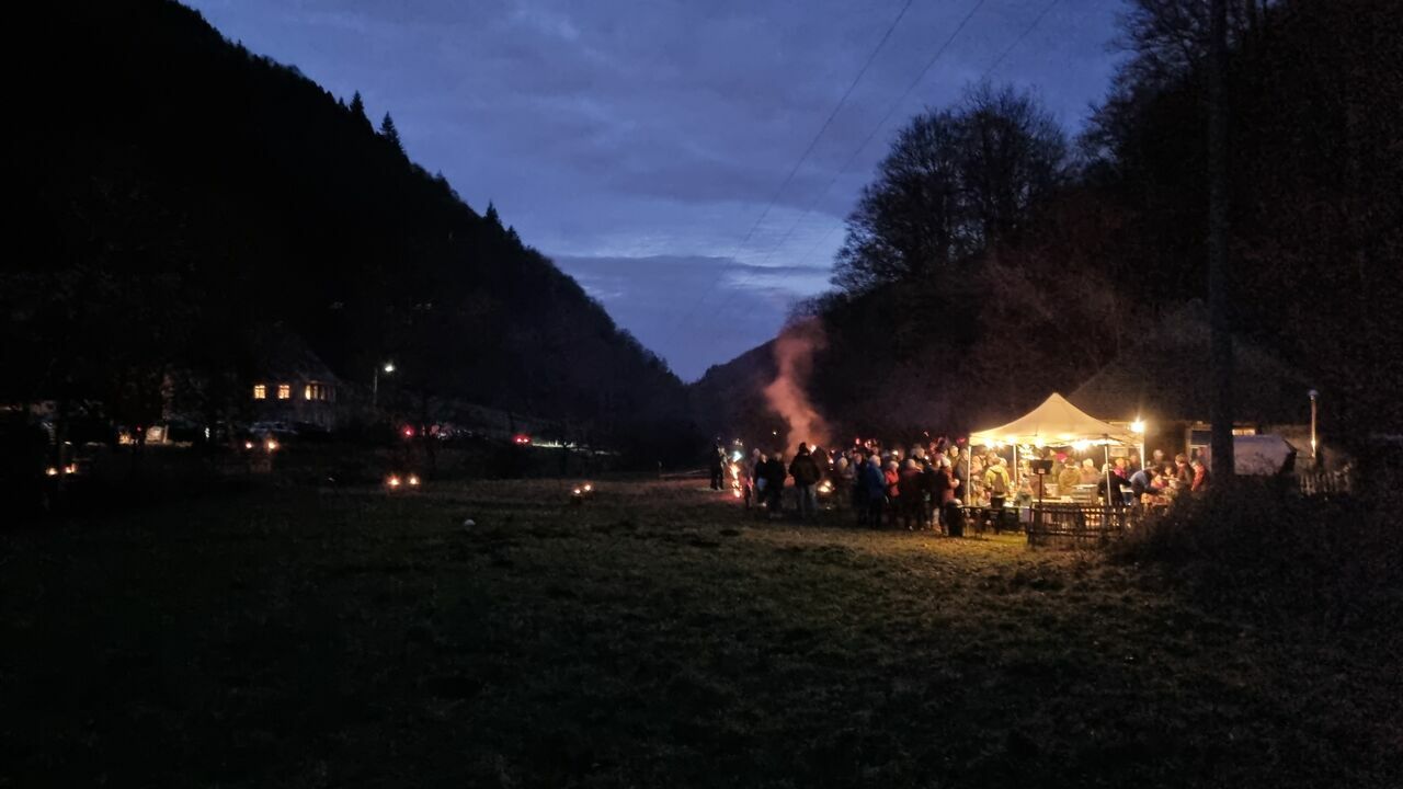 20.12.2025. Weit über 100 Besucher erlebten einen gelungenen Nachmittag/Abend in der Vorweihnachtszeit bei der Gassenbauernhofmühle mit Feuerschalen, Punsch, Glühwein und Flammkuchen aus dem neuen Brotbackofen. Draußen spielte weihnachtliche Musik und in der Mühlenstube lauschten die Kinder den Geschichten vom Christkind.